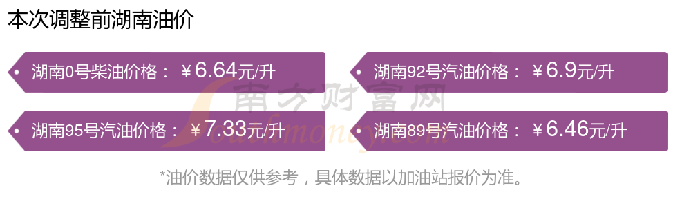 以上數(shù)據(jù)僅供參考,請以您所在地區(qū)的加油站實際售價為準。南方財富網(wǎng)發(fā)布此信息的目的在于傳播更多信息,對使用該油價信息所導致的結(jié)果概不承擔責任。