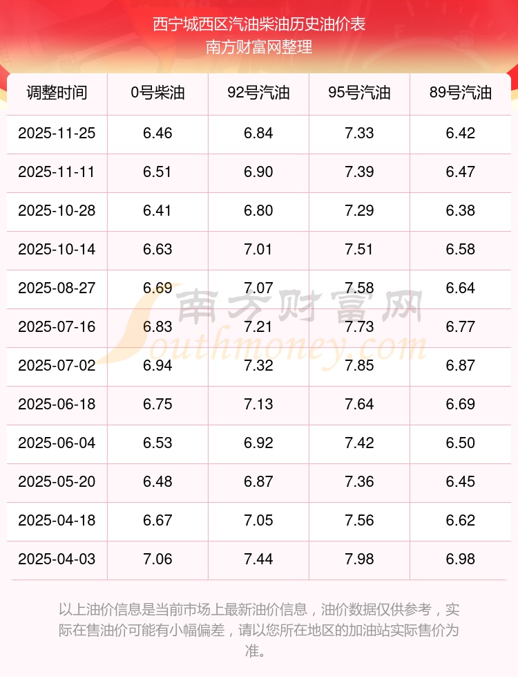 2025年西寧城西區(qū)油價(jià)調(diào)整時(shí)間表
