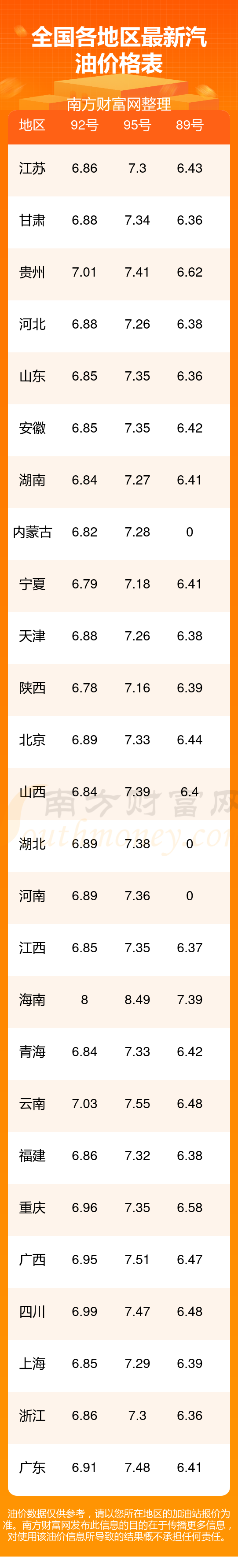 2025年12月3日全國(guó)各地汽油價(jià)格一覽表