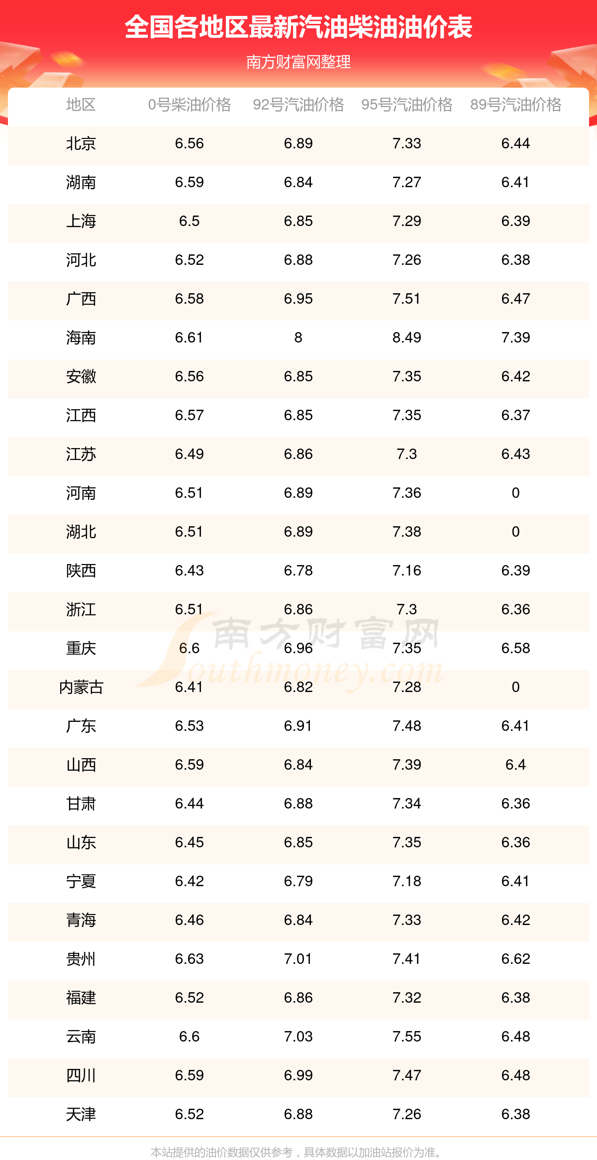 12月3日全國92、95汽油最新價格表