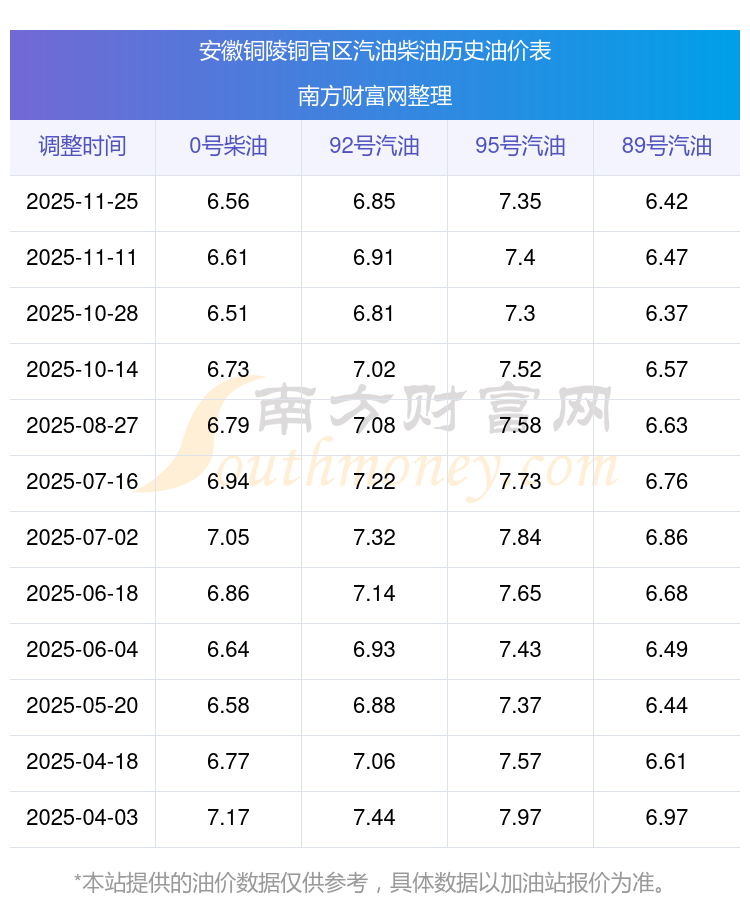 12月3日安徽銅陵銅官區(qū)92號(hào)汽油歷史油價(jià)一覽表