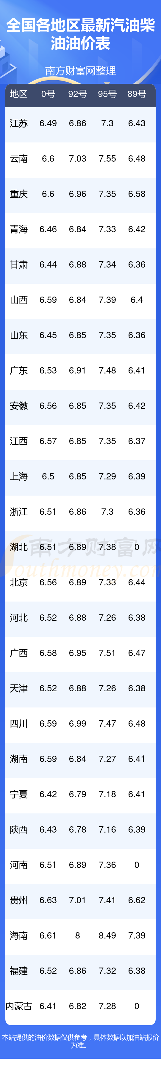 本站提供的油價數(shù)據(jù)僅供參考,具體數(shù)據(jù)以加油站報(bào)價為準(zhǔn)。