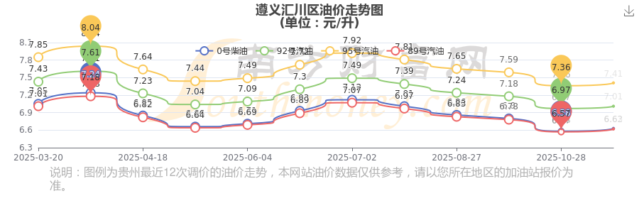 12月3日遵義匯川區(qū)92號(hào)汽油歷史油價(jià)走勢圖