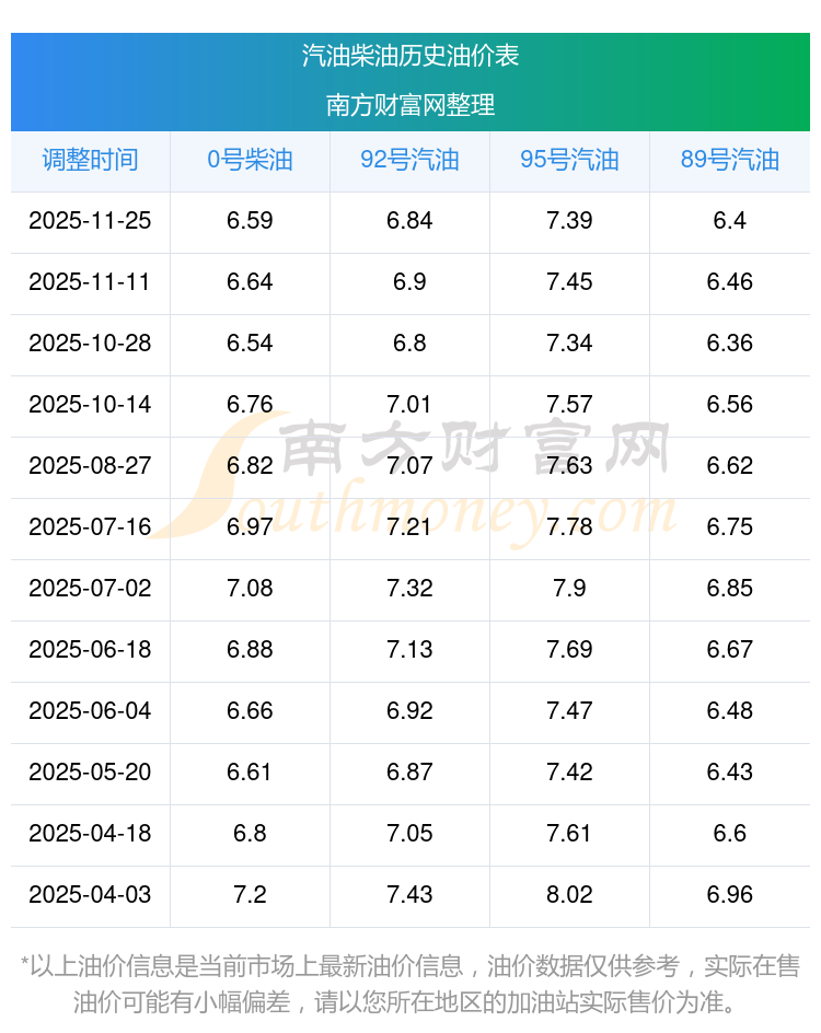 朔州95號汽油12月3日的最新價格:11月25日油價調(diào)整后,朔州95號汽油7.39元/升,相對上次調(diào)整時間11月11日的油價7.45元每升,下調(diào)了0.06元,下調(diào)0.805%。下一輪油價調(diào)整時間12月8日24時,距離現(xiàn)在還有5.33天。