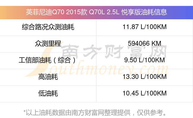 根據(jù)車主實測數(shù)據(jù),該車型低油耗為10.45L/100km,高油耗為13.30L/100km,綜合路況眾測油耗為11.87L/100km,工信部綜合油耗為9.50L/100km。