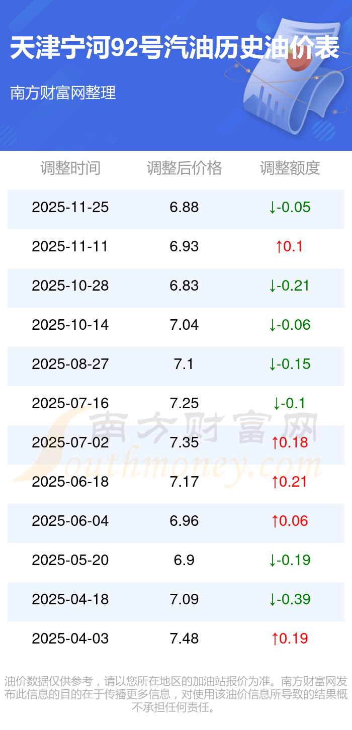 2025年92號(hào)汽油價(jià)格調(diào)整一覽表
