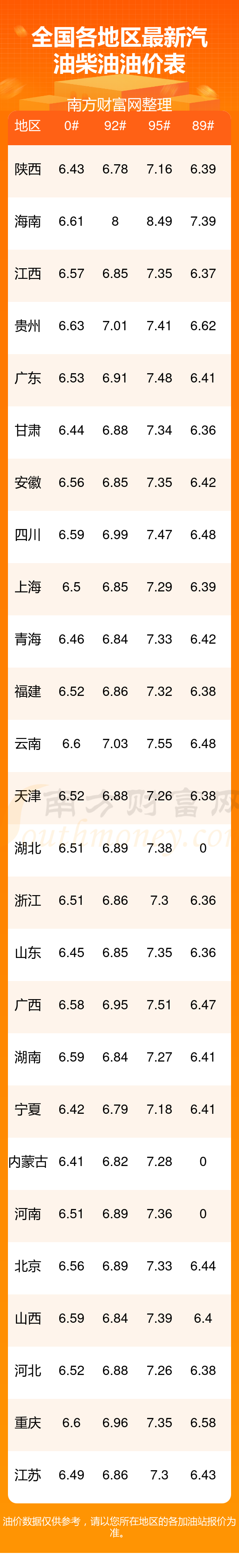 附:最新全國汽油、柴油價(jià)格一覽表