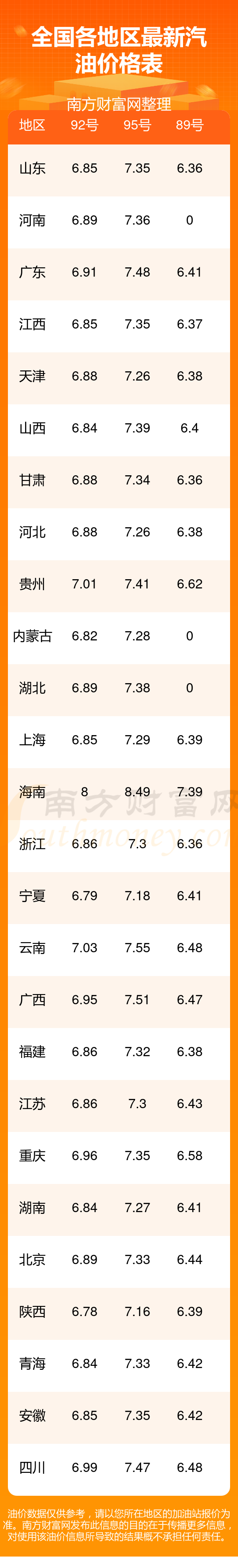本站提供的油價數(shù)據(jù)僅供參考,具體數(shù)據(jù)以加油站報價為準(zhǔn)。