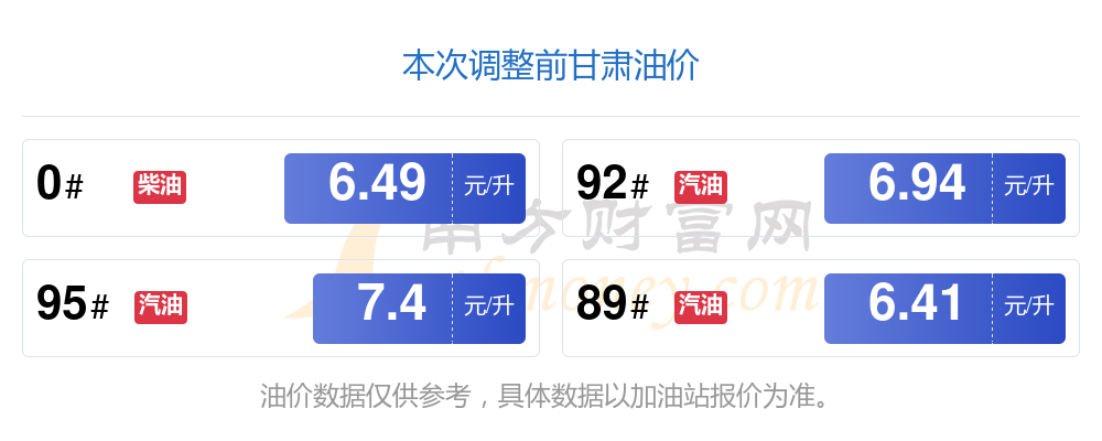 油價數(shù)據(jù)僅供參考,請以您所在地區(qū)的加油站報價為準。南方財富網(wǎng)發(fā)布此信息的目的在于傳播更多信息,對使用該油價信息所導致的結果概不承擔任何責任。