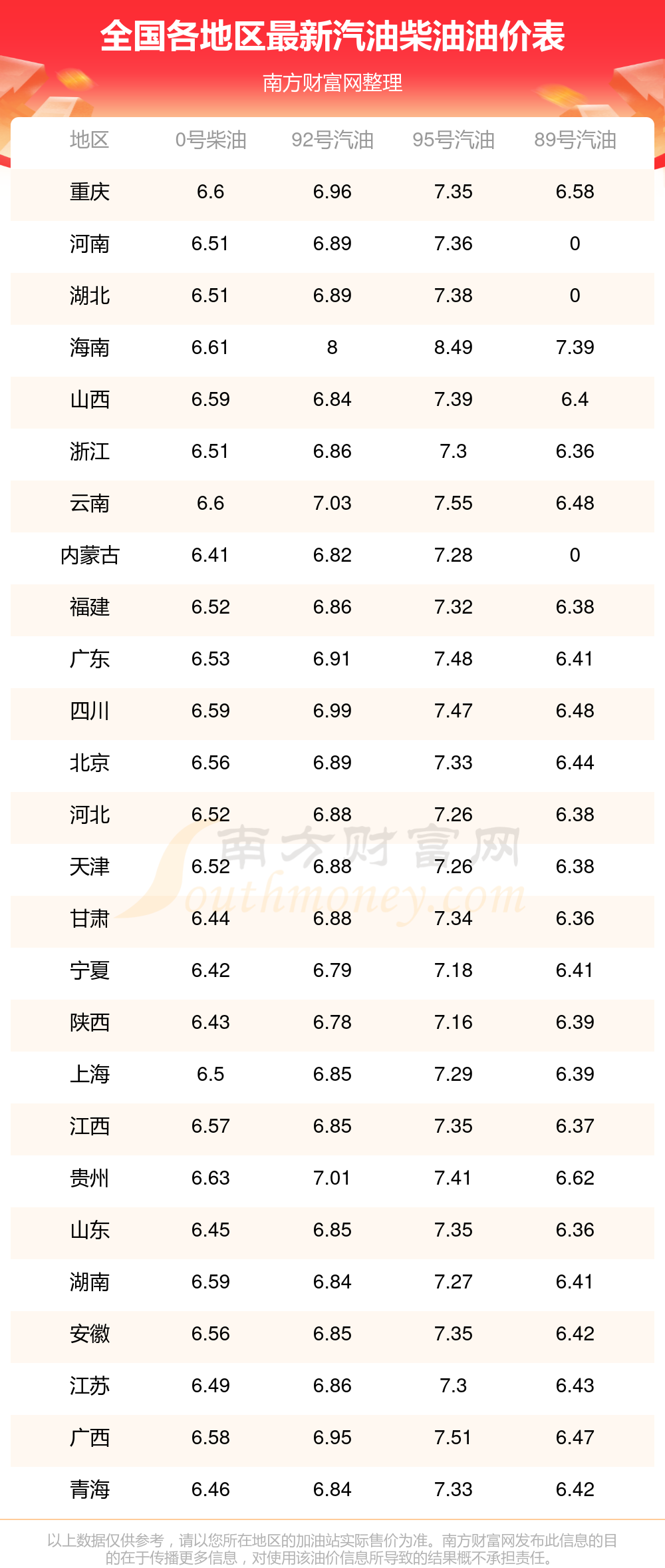 以上油價信息是當前市場上最新油價信息,油價數(shù)據(jù)僅供參考,實際在售油價可能有小幅偏差,請以您所在地區(qū)的加油站實際售價為準。