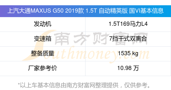 在動力上,上汽大通MAXUS G50 2019款 1.5T 自動精英版 國VI配備的是一臺1.5T169馬力L4渦輪增壓發(fā)動機,匹配的是7擋干式雙離合自動檔變速箱,燃料形式為汽油,常規(guī)整備質(zhì)量1535kg,廠家參考價10.98萬元。
