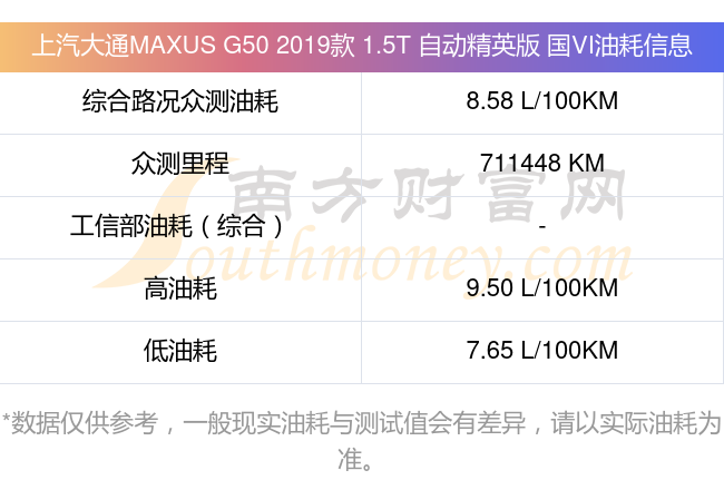 根據(jù)多位車主實測得出數(shù)據(jù),該車型低油耗為7.65L/100km,高油耗為9.50L/100km,綜合路況眾測油耗為8.58L/100km,工信部綜合油耗為-L/100km。
