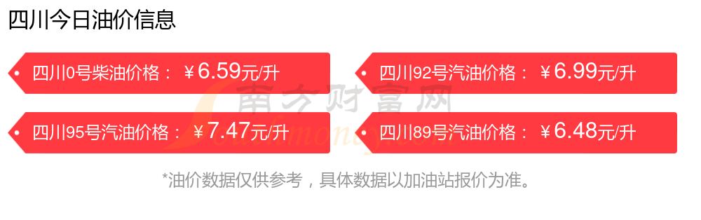 油價(jià)數(shù)據(jù)僅供參考,請(qǐng)以您所在地區(qū)的加油站報(bào)價(jià)為準(zhǔn)。南方財(cái)富網(wǎng)發(fā)布此信息的目的在于傳播更多信息,對(duì)使用該油價(jià)信息所導(dǎo)致的結(jié)果概不承擔(dān)任何責(zé)任。