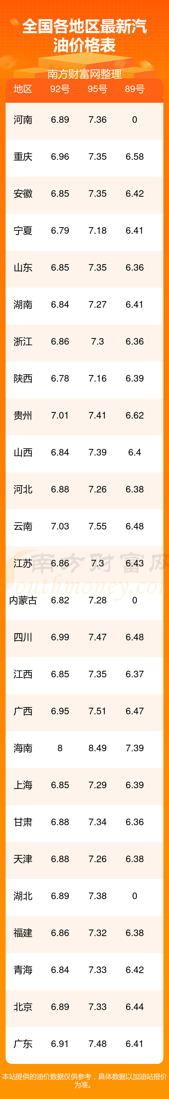 油價數(shù)據(jù)僅供參考,請以您所在地區(qū)的加油站報價為準。南方財富網(wǎng)發(fā)布此信息的目的在于傳播更多信息,對使用該油價信息所導致的結果概不承擔任何責任。