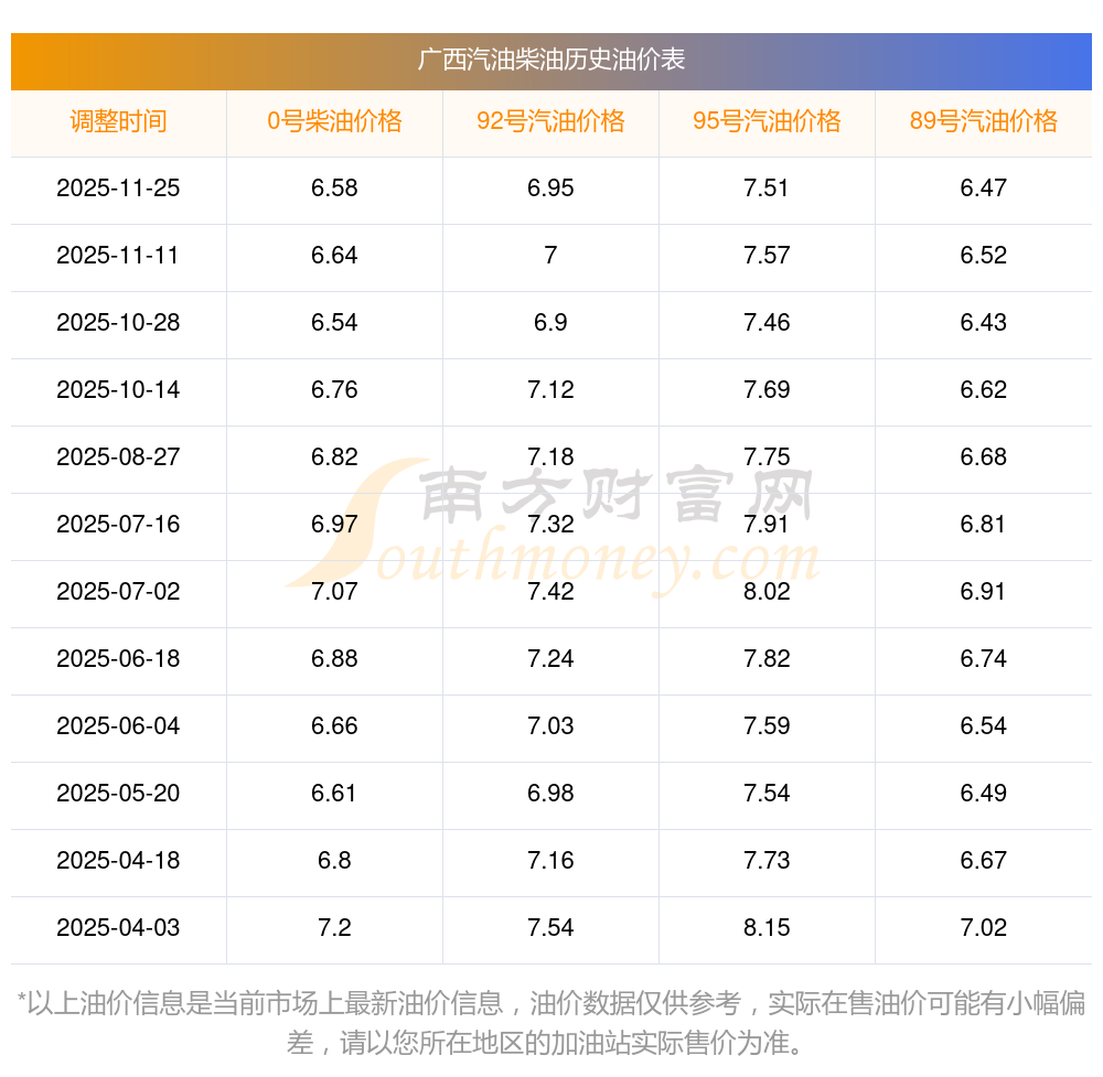 (12月3日)全國(guó)油價(jià)一覽表