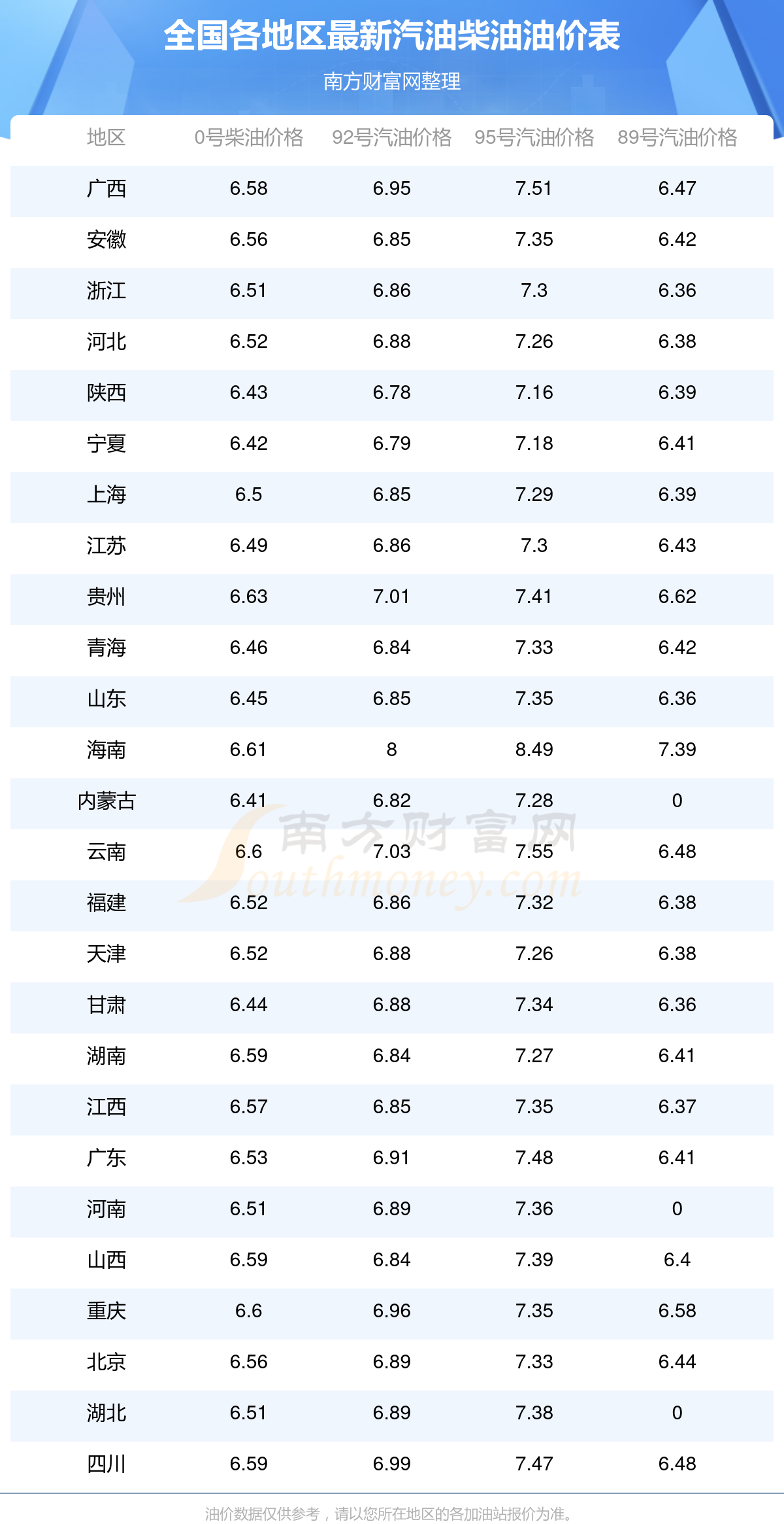 以上油價信息是當前市場上最新油價信息,油價數(shù)據(jù)僅供參考,實際在售油價可能有小幅偏差,請以您所在地區(qū)的加油站實際售價為準。