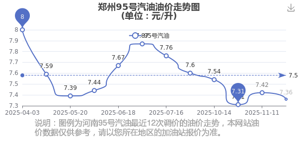 2025年鄭州汽油價(jià)格歷史走勢圖