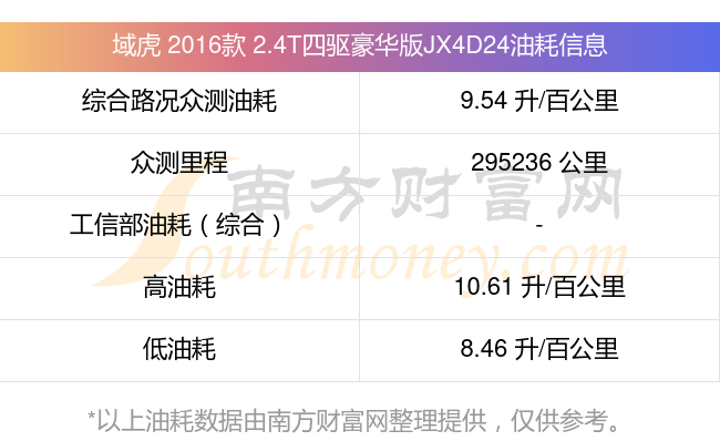 根據(jù)車主實測數(shù)據(jù),該車型低油耗為8.46L/100km,高油耗為10.61L/100km,綜合路況眾測油耗為9.54L/100km,工信部綜合油耗為-L/100km。