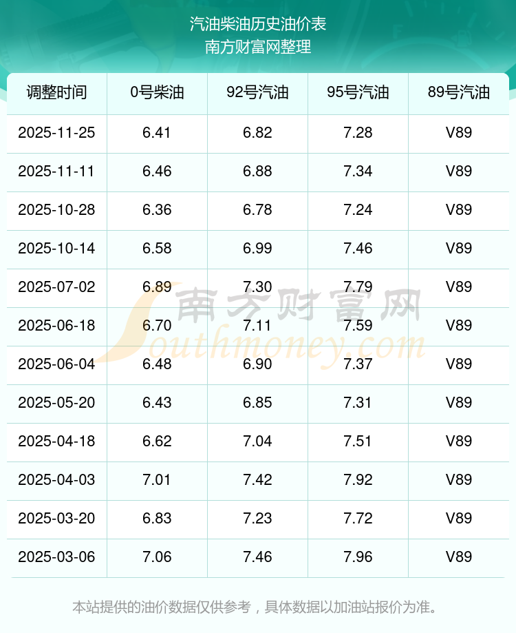 2025年汽油柴油油價(jià)調(diào)整一覽表