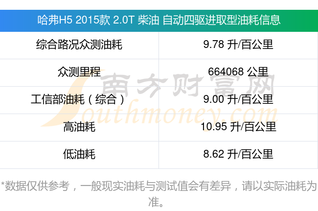 根據(jù)車主實測數(shù)據(jù),該車型低油耗為8.62升/百公里,高油耗為10.95升/百公里,綜合路況眾測油耗為9.78升/百公里,工信部綜合油耗為9.00升/百公里。