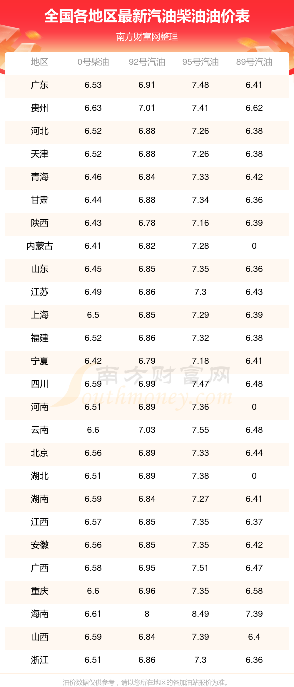 油價數(shù)據(jù)僅供參考,請以您所在地區(qū)的各加油站報價為準。