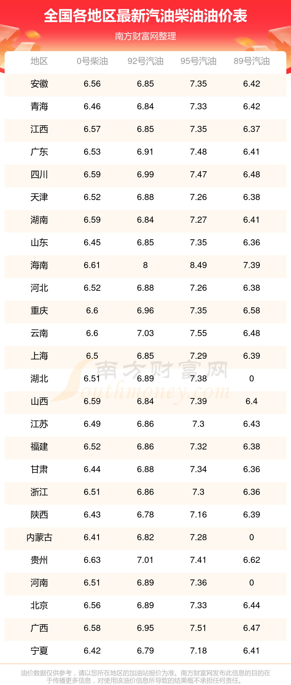 2025年南寧良慶區(qū)12月3日汽油價(jià)格一覽表