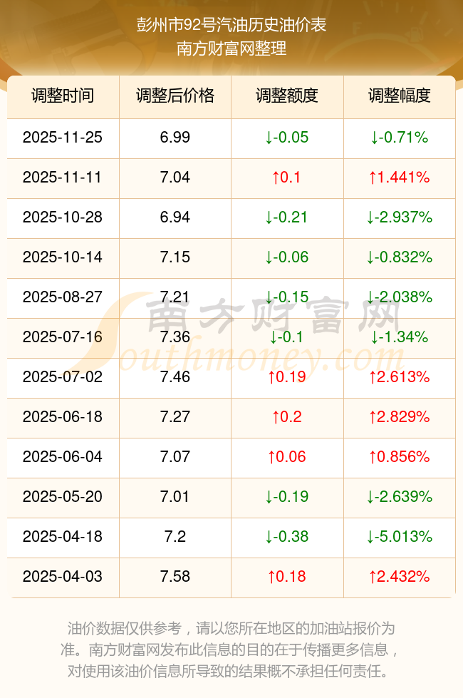 12月3日彭州市92號(hào)汽油歷史油價(jià)一覽表
