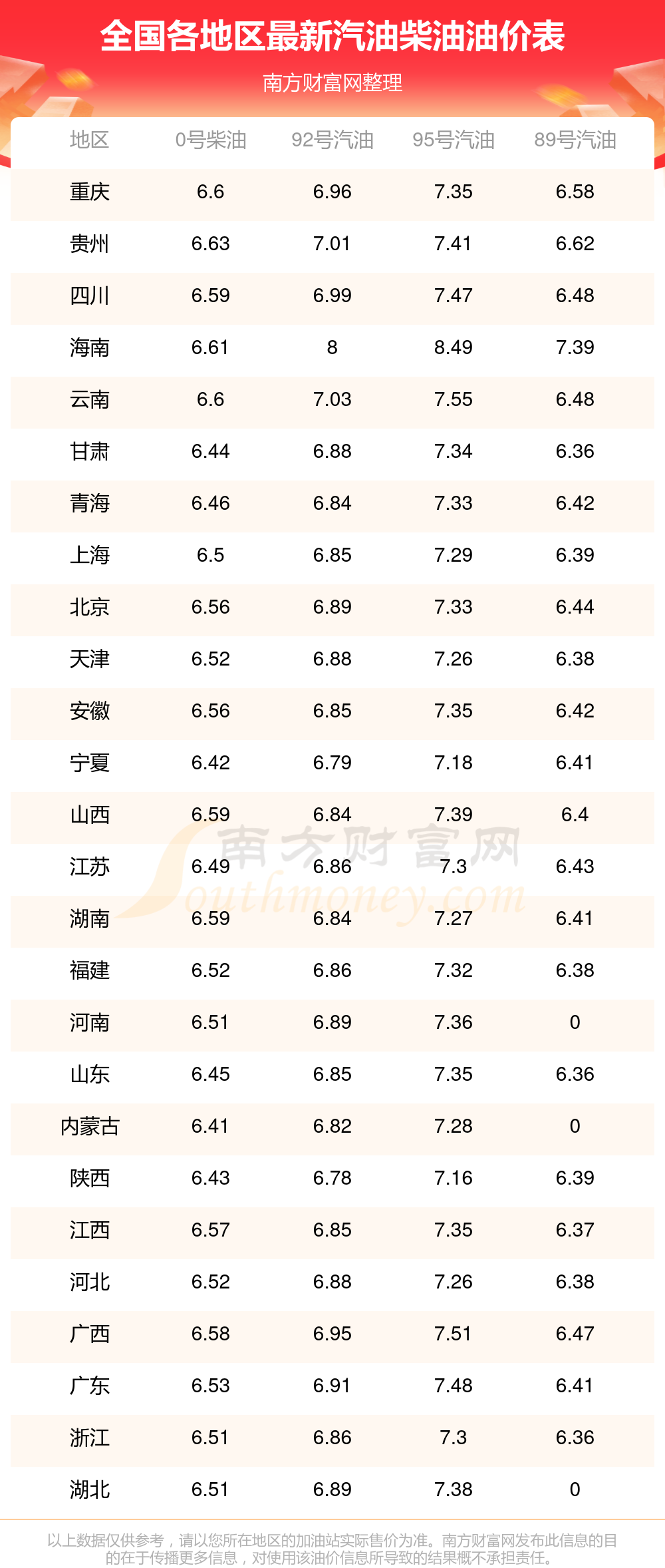 2025年全國各地區(qū)汽油價(jià)格表