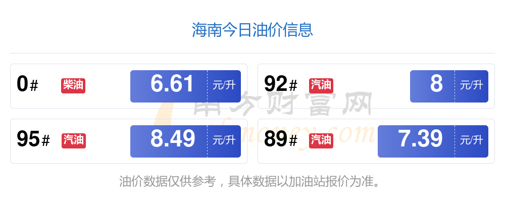 油價數(shù)據(jù)僅供參考,請以您所在地區(qū)的加油站報價為準(zhǔn)。南方財富網(wǎng)發(fā)布此信息的目的在于傳播更多信息,對使用該油價信息所導(dǎo)致的結(jié)果概不承擔(dān)任何責(zé)任。