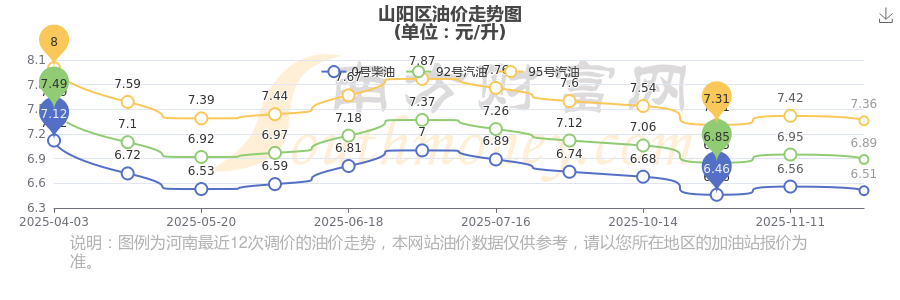 12月3日山陽(yáng)區(qū)95號(hào)汽油歷史油價(jià)走勢(shì)圖