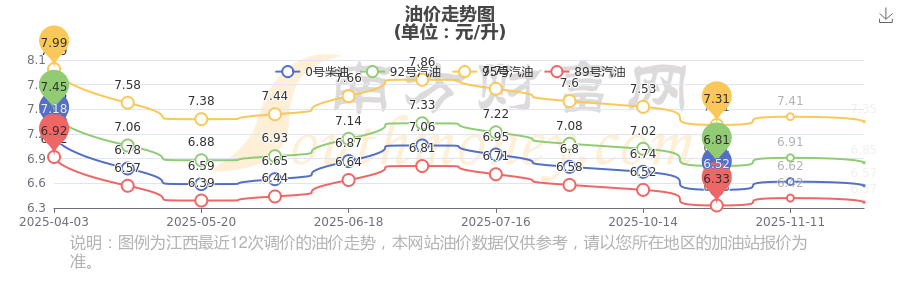 以上數(shù)據(jù)僅供參考,請以您所在地區(qū)的加油站實際售價為準。南方財富網(wǎng)發(fā)布此信息的目的在于傳播更多信息,對使用該油價信息所導(dǎo)致的結(jié)果概不承擔(dān)責(zé)任。