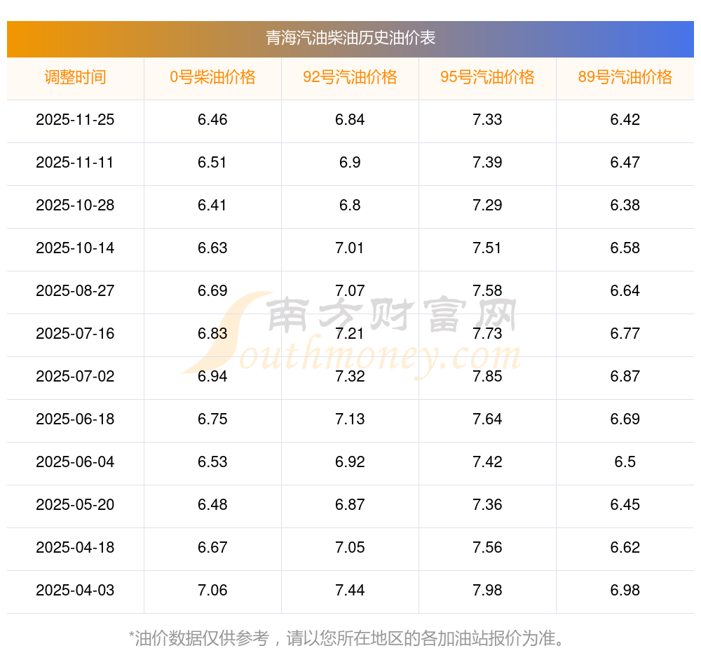 2025年青海汽油價(jià)格一覽表