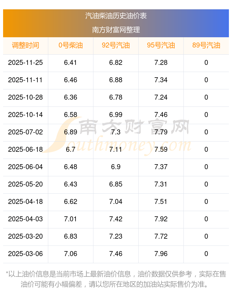 12月3日烏海92號汽油的價格是6.82元/升,油價于11月25日調(diào)整,相對上次調(diào)整時間11月11日的油價6.88元每升,共跌了0.06元,跌幅達0.872%。下一輪油價調(diào)整時間12月8日24時,距離現(xiàn)在還有5.11天。