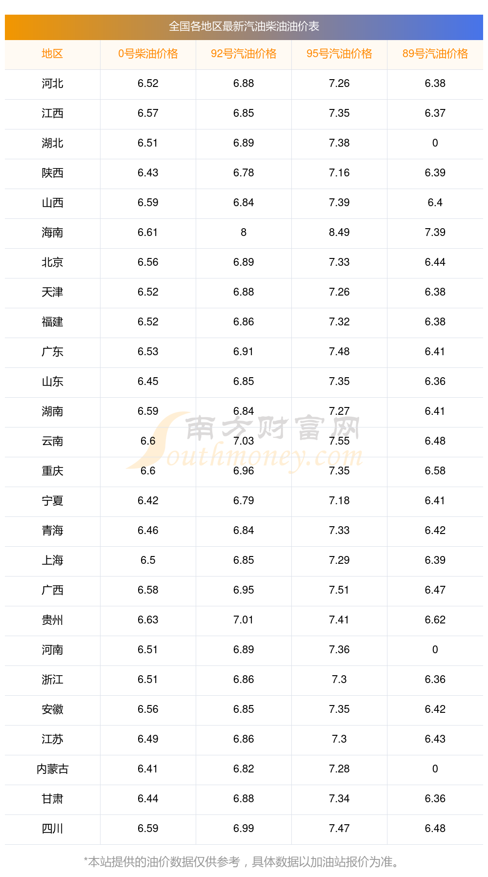 油價(jià)數(shù)據(jù)僅供參考,請(qǐng)以您所在地區(qū)的各加油站報(bào)價(jià)為準(zhǔn)。