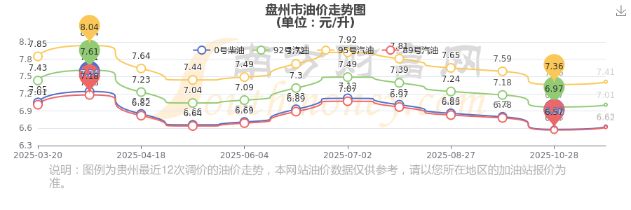盤州市12月3日95號(hào)汽油歷史油價(jià)調(diào)整走勢(shì)圖