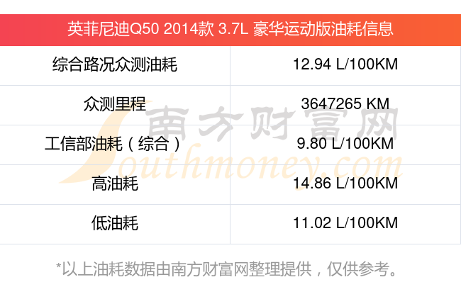 根據(jù)多位車(chē)主實(shí)測(cè)得出數(shù)據(jù),該車(chē)型低油耗為11.02L/100km,高油耗為14.86L/100km,綜合路況眾測(cè)油耗為12.94L/100km,工信部綜合油耗為9.80L/100km。