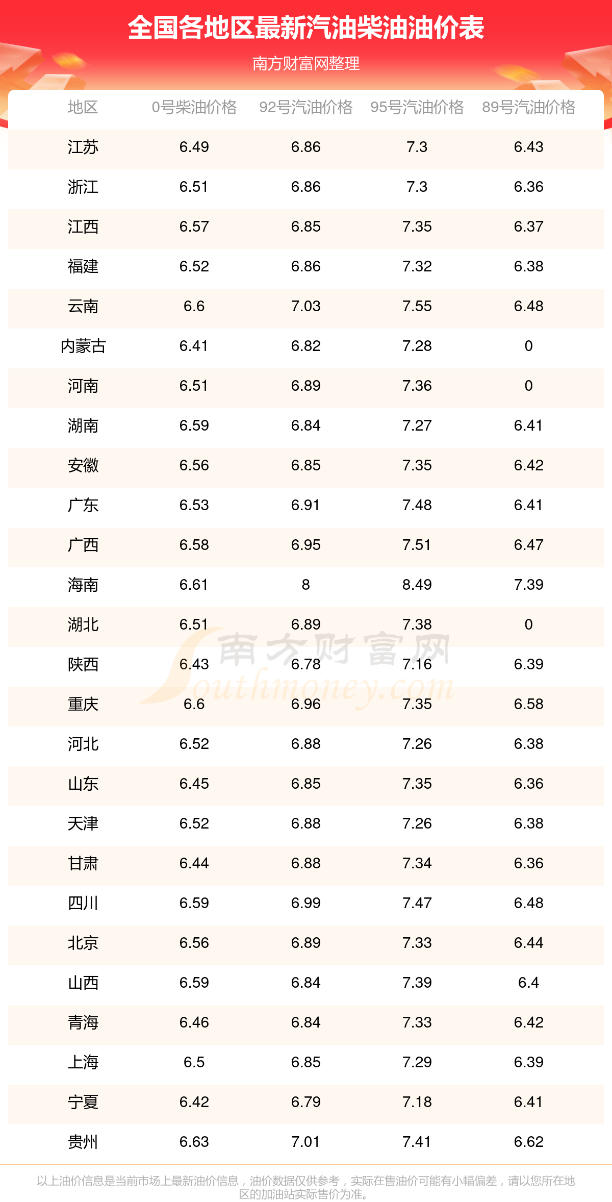 2025年12月4日全國油價調(diào)整及最新汽油價格表