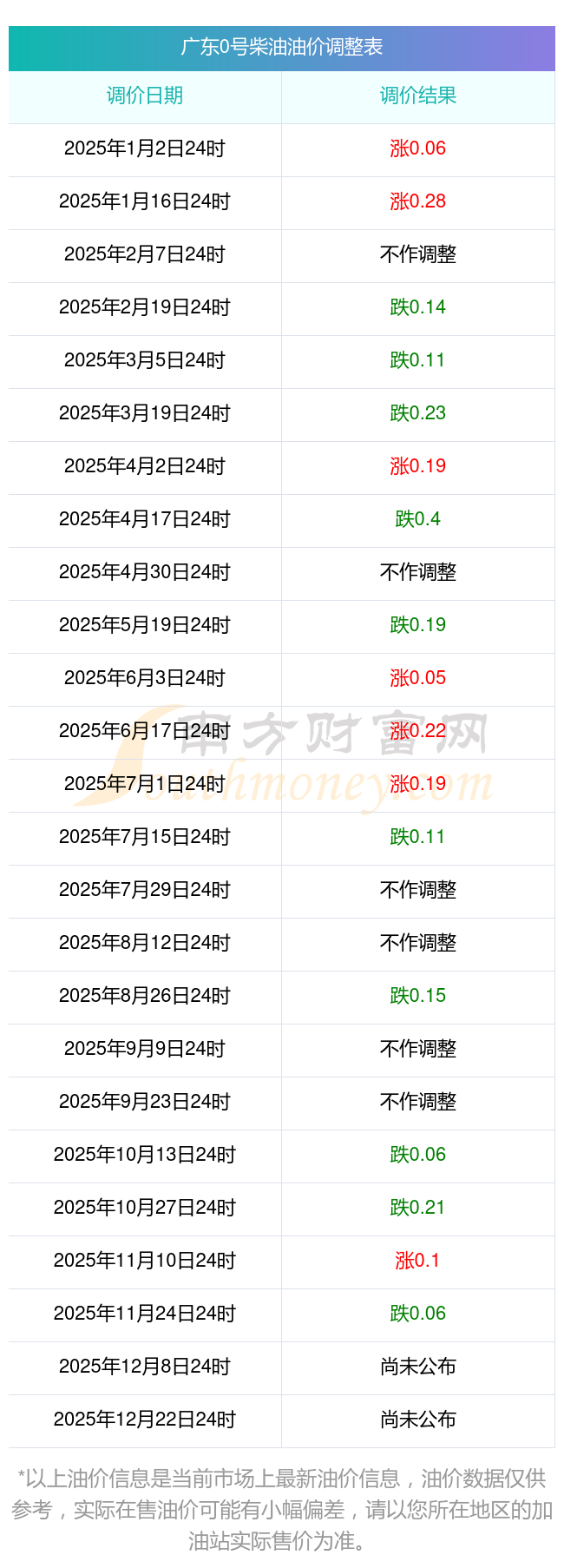 2025年廣東汽油價(jià)格調(diào)整一覽表