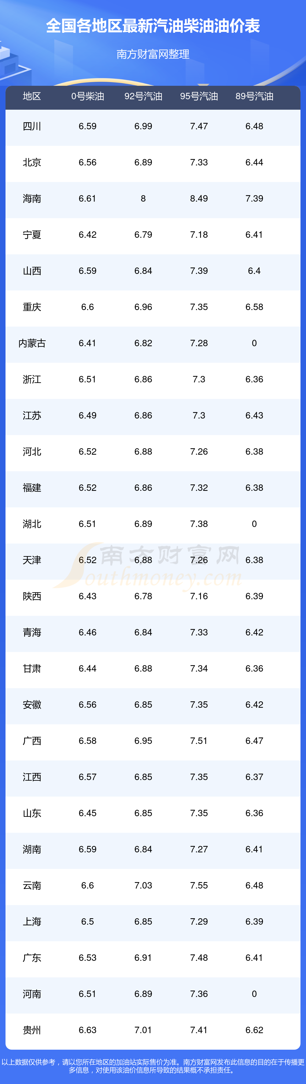 油價數(shù)據(jù)僅供參考,請以您所在地區(qū)的加油站報價為準(zhǔn)。南方財富網(wǎng)發(fā)布此信息的目的在于傳播更多信息,對使用該油價信息所導(dǎo)致的結(jié)果概不承擔(dān)任何責(zé)任。