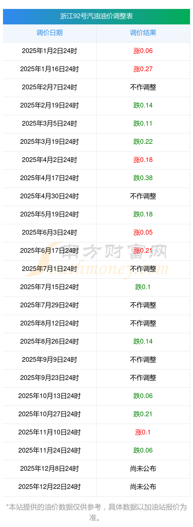 12月4日,浙江92號汽油的價格是6.86元每升,本次的調(diào)整時間為11月25日,對比上次的調(diào)整下跌了0.06元,下跌0.867%,12月8日24時為下一輪油價調(diào)整時間,還有4.73天。