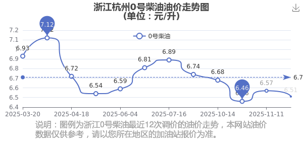 12月4日,浙江杭州汽油、柴油每升的價格是多少?本次油價調(diào)整時間是11月25日,92號汽油為6.86元,跌了0.06元,跌幅達0.87%;95號汽油為7.3元,跌了0.06元,跌幅達0.82%;89號汽油為6.36元,跌了0.05元,跌幅達0.78%;0號柴油為6.51元,跌了0.06元,跌幅達0.91%。浙江杭州下一輪油價調(diào)整時間12月8日24時,距離現(xiàn)在還有4.71天。