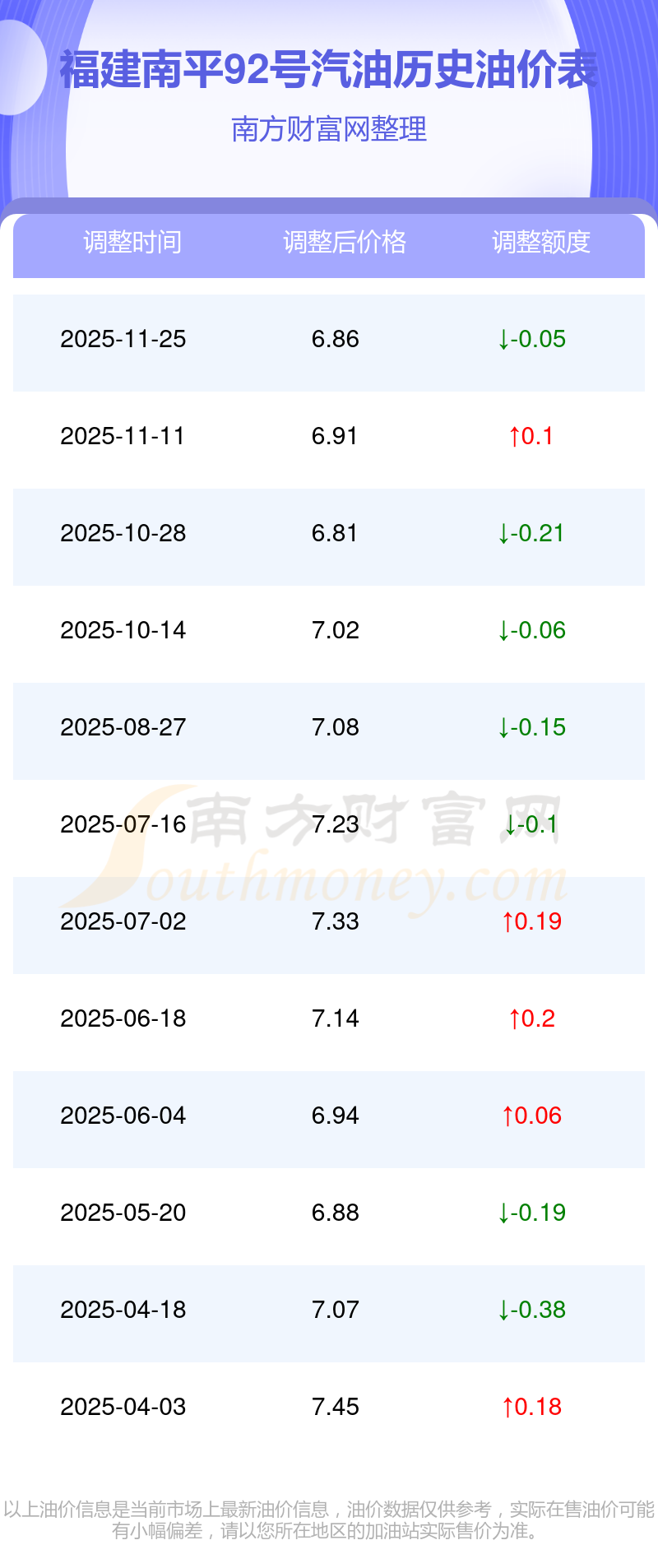 2025年92號汽油價(jià)格調(diào)整一覽表