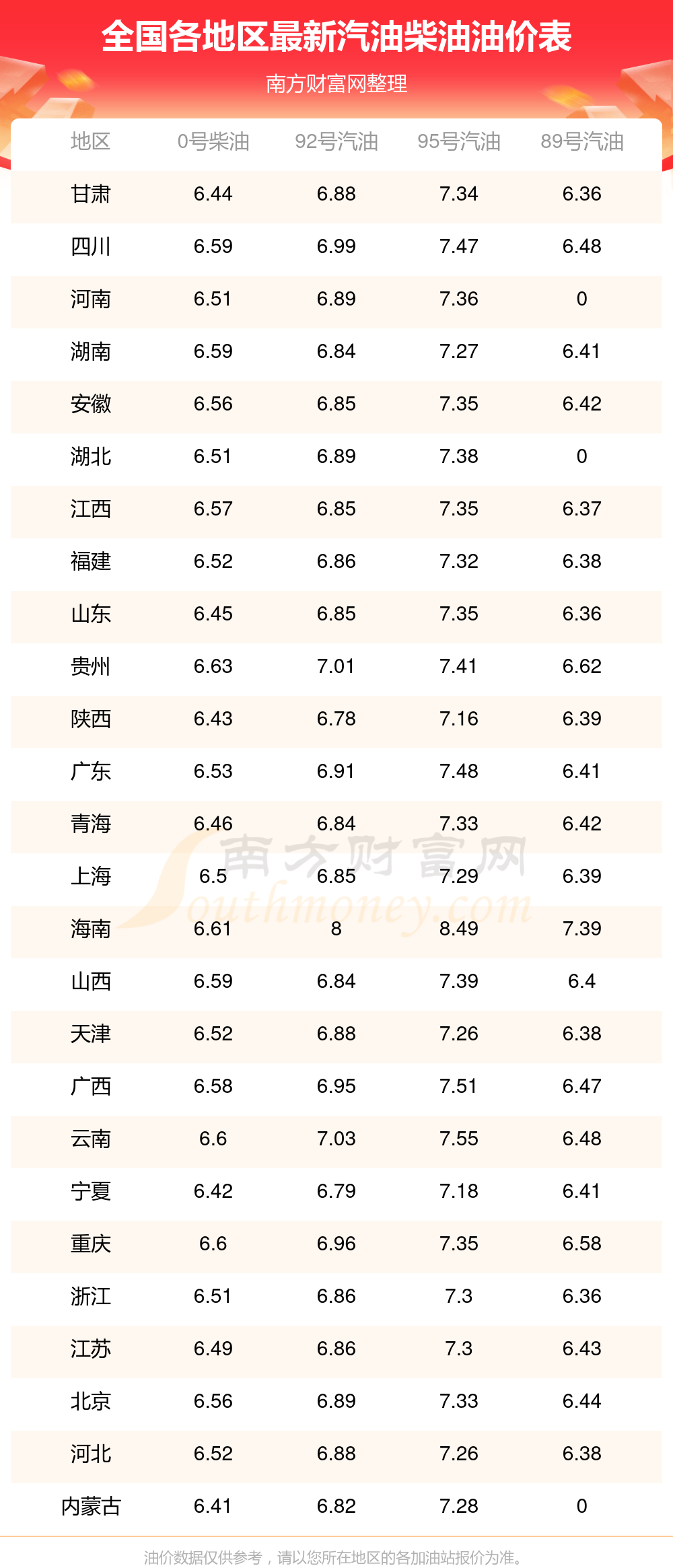 全國95號汽油平均價格為:7元每升,其中,最低為陜西,價格7.16元/升,最高為海南,價格8.49元/升。