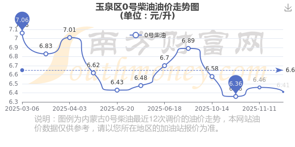 玉泉區(qū)0號柴油歷史油價走勢圖