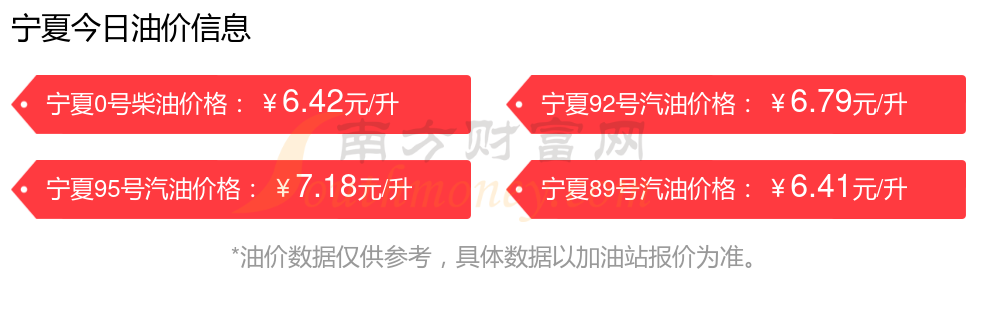 寧夏汽油、柴油12月4日每升的價格是多少?具體為:92號汽油為6.79元;95號汽油為7.18元;89號汽油為6.41元,跌了0.05;0號柴油為6.42元,本輪調(diào)整時間為11月25日。