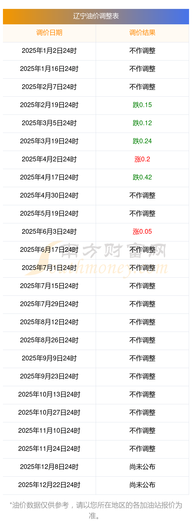 沈陽(yáng)2025年油價(jià)調(diào)整時(shí)間及價(jià)格表