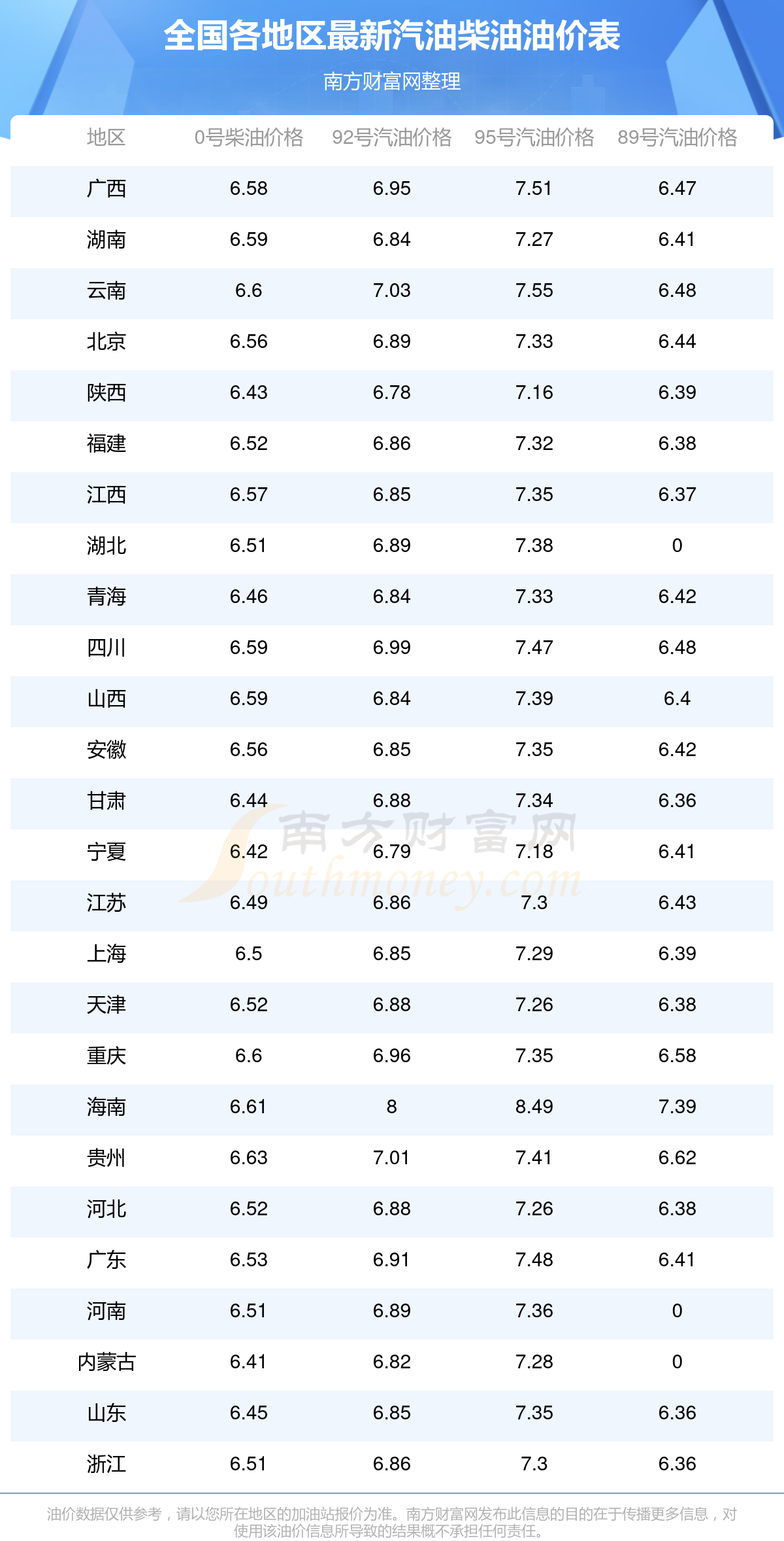 2025年12月4日全國各地油價調(diào)整及最新汽油價格表