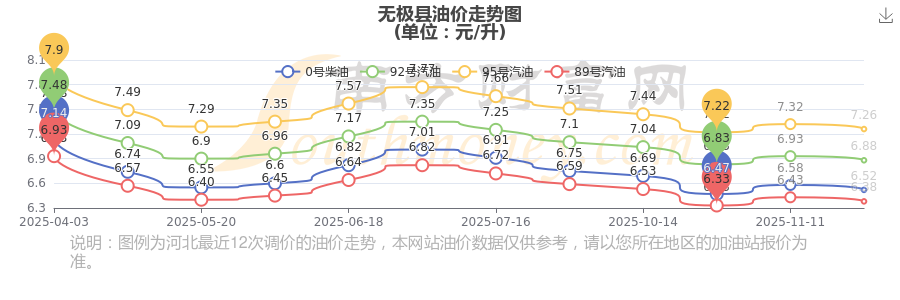 12月4日無(wú)極縣92號(hào)汽油歷史油價(jià)走勢(shì)圖