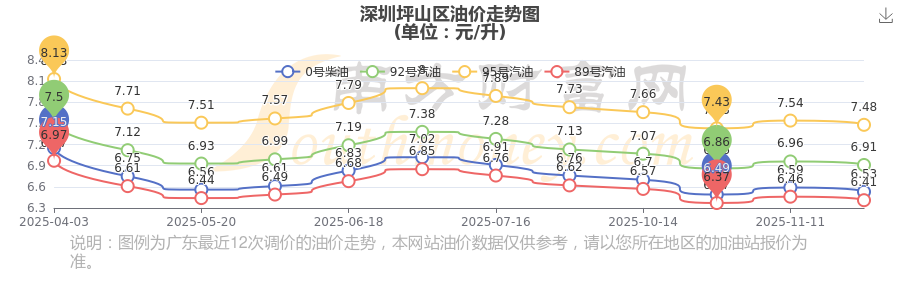 深圳坪山區(qū)12月4日95號(hào)汽油歷史油價(jià)調(diào)整走勢(shì)圖