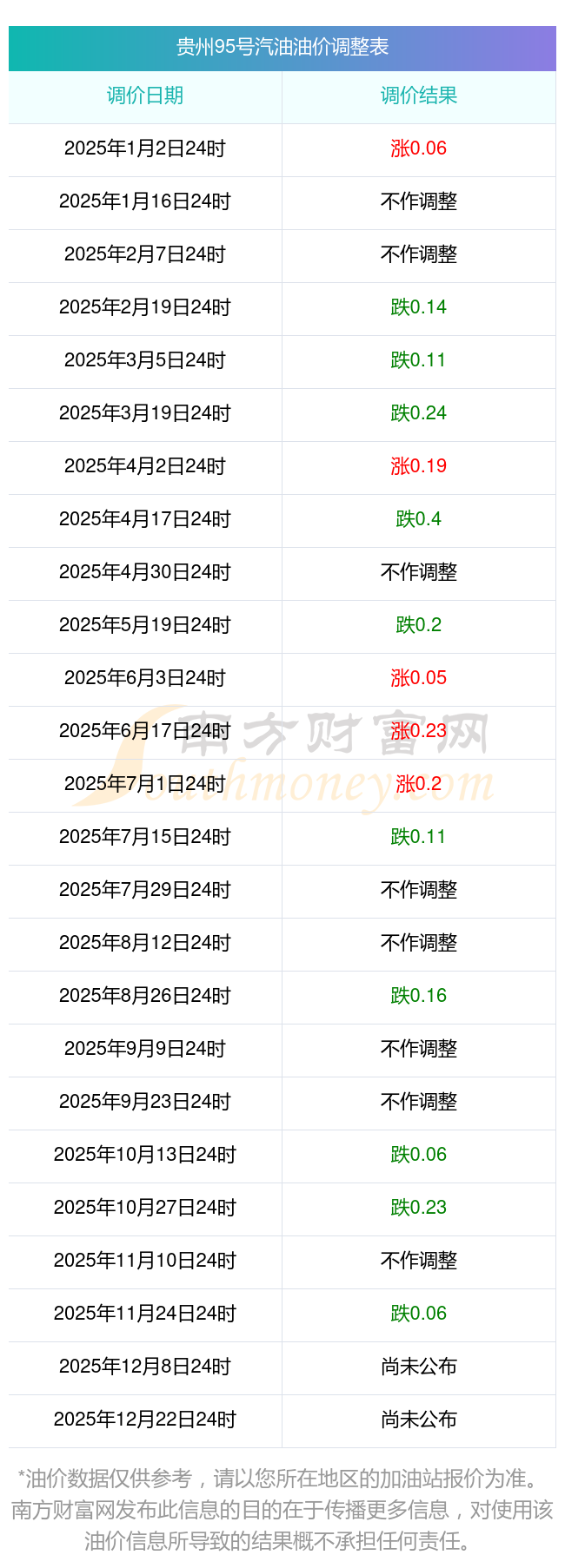 2025年貴州最新汽油價(jià)格調(diào)整一覽表